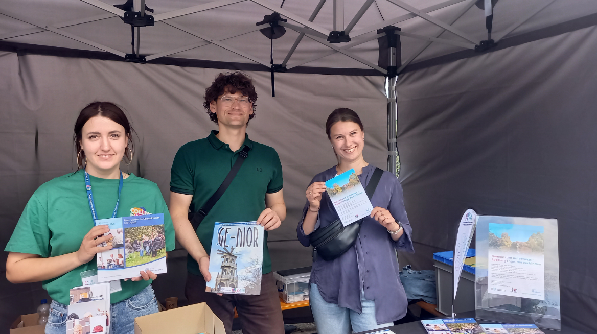 Auch beim Bezirksfest im Norden waren wir mit dabei – am Samstag, den 17. Mai, präsentierten wir unsere Angebote rund um das Thema „Gut älter werden in GE“. An unserem Stand gab es viele Informationen und die Möglichkeit mit uns ins Gespräch zukommen. Besonders der Spaziergang am Berger See in der Aktionswoche Gemeinsam aus der Einsamkeit stieß auf großes Interesse.