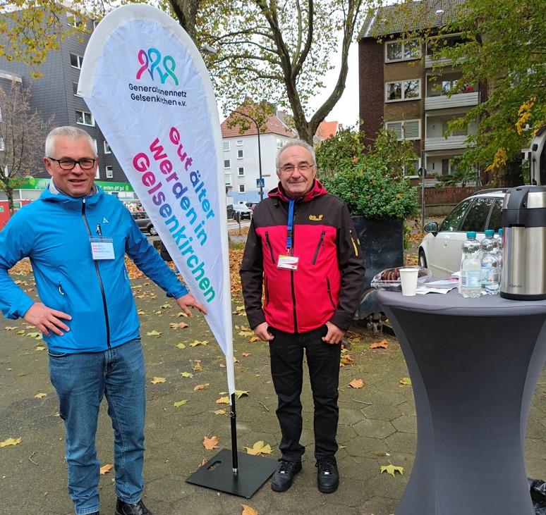 Zuletzt am 10. April boten Dragi Goldemund, Nurettin Berber und Hans-Peter Back nicht nur Informationsmaterial zu ihren Angeboten als Nachbarschaftsstifter:innen, sondern auch eine warme Tasse Kaffee oder Tee an. In entspannter Atmosphäre konnten die Besucher:innen bei einem Heißgetränk ihre Anliegen schildern, Fragen stellen oder einfach nur ein nettes Gespräch führen.