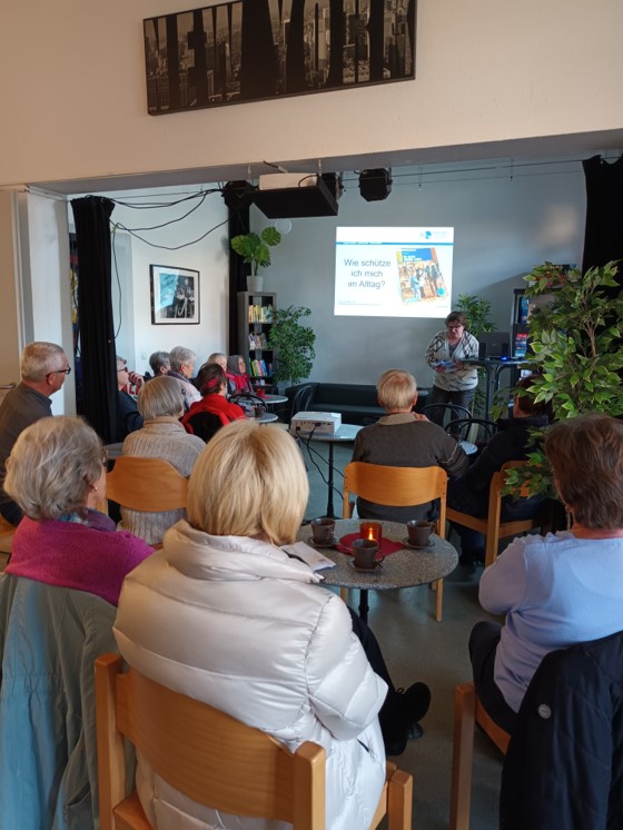 Im Frühjahr 2024 durften sie Frau Schneider von der Polizei in der Villa Heßler begrüßen. In einer informativen Veranstaltung berichtete sie eindrücklich über aktuelle Betrugsmaschen, die sich gezielt gegen ältere Menschen richten – und erklärte, wie man sich davor schützen kann. Im Anschluss blieb bei Kaffee und Kuchen noch reichlich Zeit für persönlichen Austausch und Gespräche in entspannter Runde.