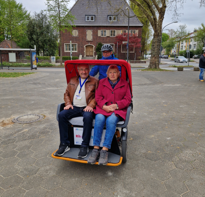 Ein besonderes Highlight beim Termin kurz vor Ostern: Wer mochte, konnte sich mit einer Fahrradrikscha eine Runde über den Platz kutschieren lassen – ein Angebot, das vor allem bei älteren Marktbesucher:innen für Freude und Abwechslung sorgte.