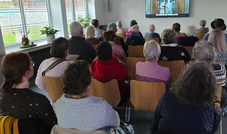 Die Filmvorführung am 14. Dezember 2025 war ein großer Erfolg. Trotz des vorweihnachtlichen Stresses und voller Terminkalender mit Weihnachtsessen, Geschenkebesorgungen usw. kamen ca. 25 Filminteressierte zusammen, um den Film „Der Hundertjährige, der aus dem Fenster stieg und verschwand“ zu sehen. Anschließend gab es viele Begegnungen und Austausch bei Kaffee und Gebäck. So kamen viele Menschen ins Gespräch, lachten miteinander und knüpften neue Kontakte.