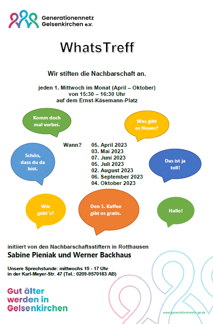 Also kommen Sie gerne vorbei! Die Nachbarschaftsstifter*innen freuen sich darauf, sie beim WhatsTreff begrüßen zu dürfen!
